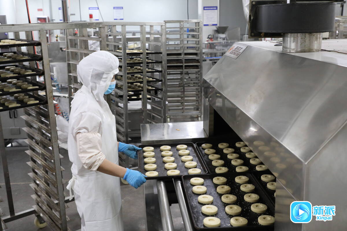 濰坊佳樂家農(nóng)產(chǎn)品加工配送中心有限公司面食加工車間內(nèi),工人在制作點(diǎn)心。